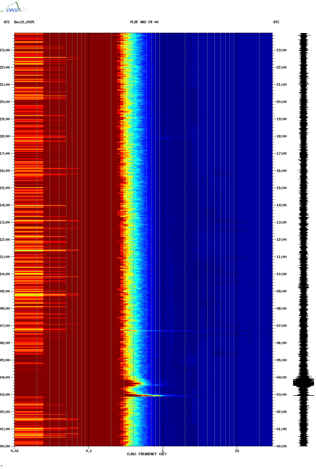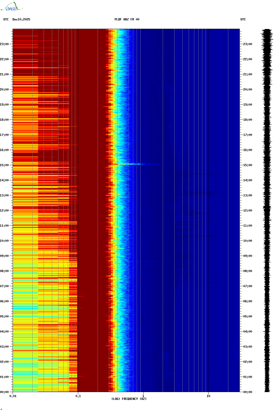 Spectrogrammes du Réseau Sismologique Auvergne-Charentes