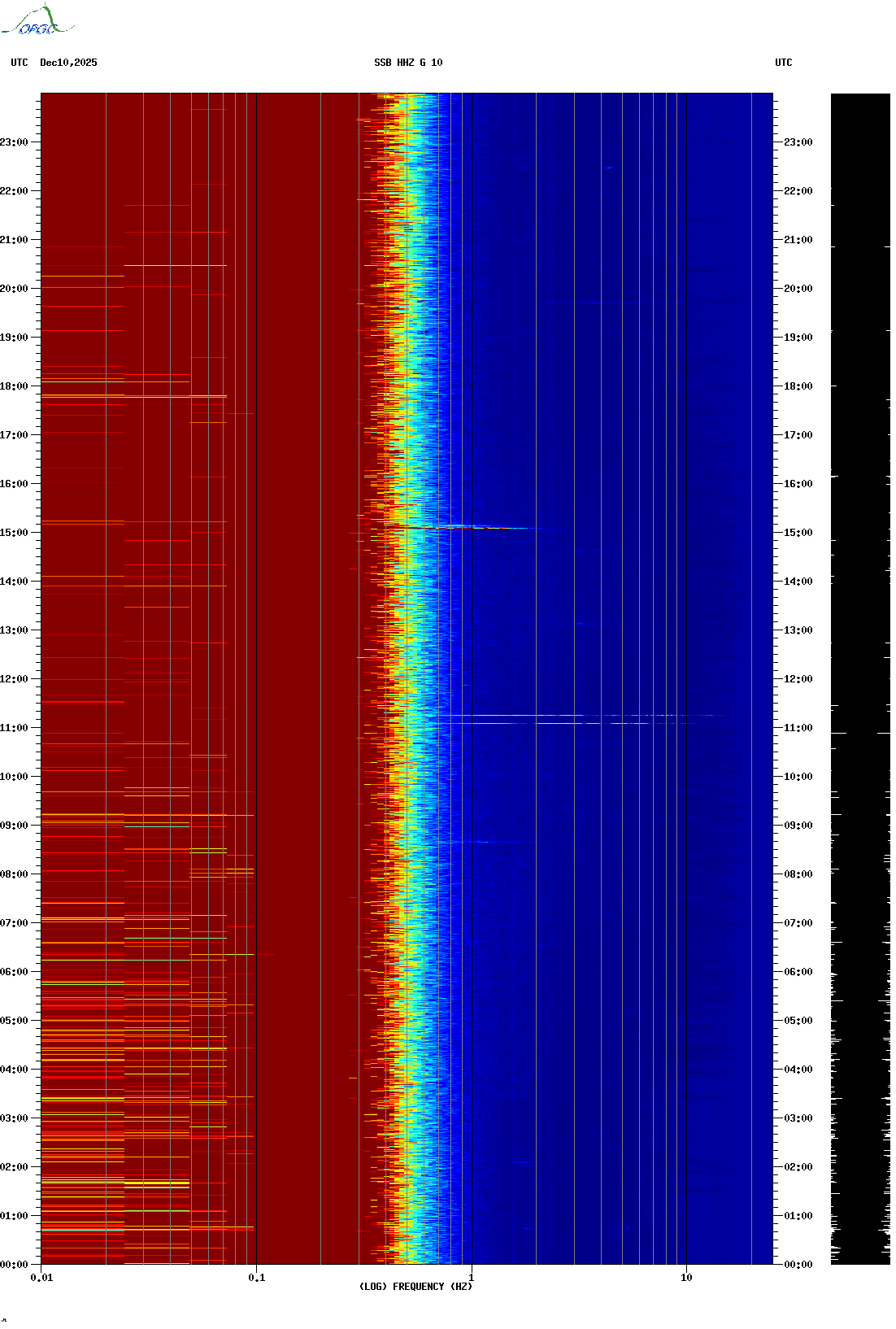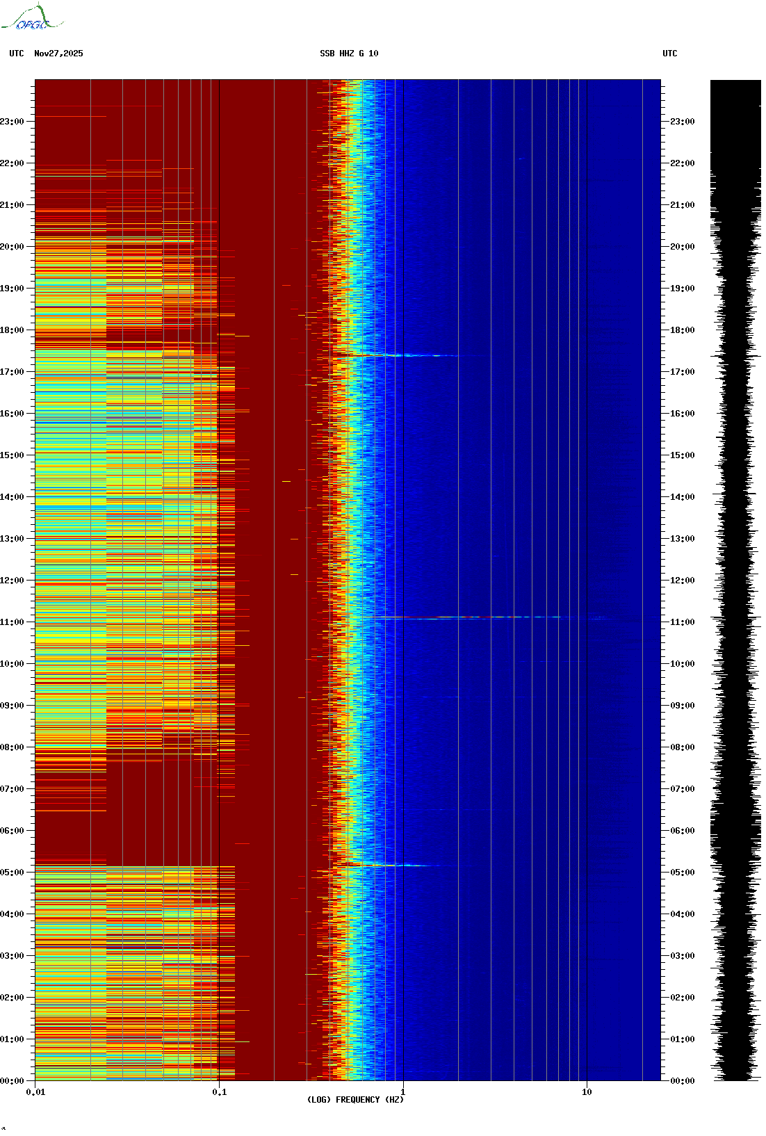 Spectrogrammes du Réseau Sismologique Auvergne-Charentes
