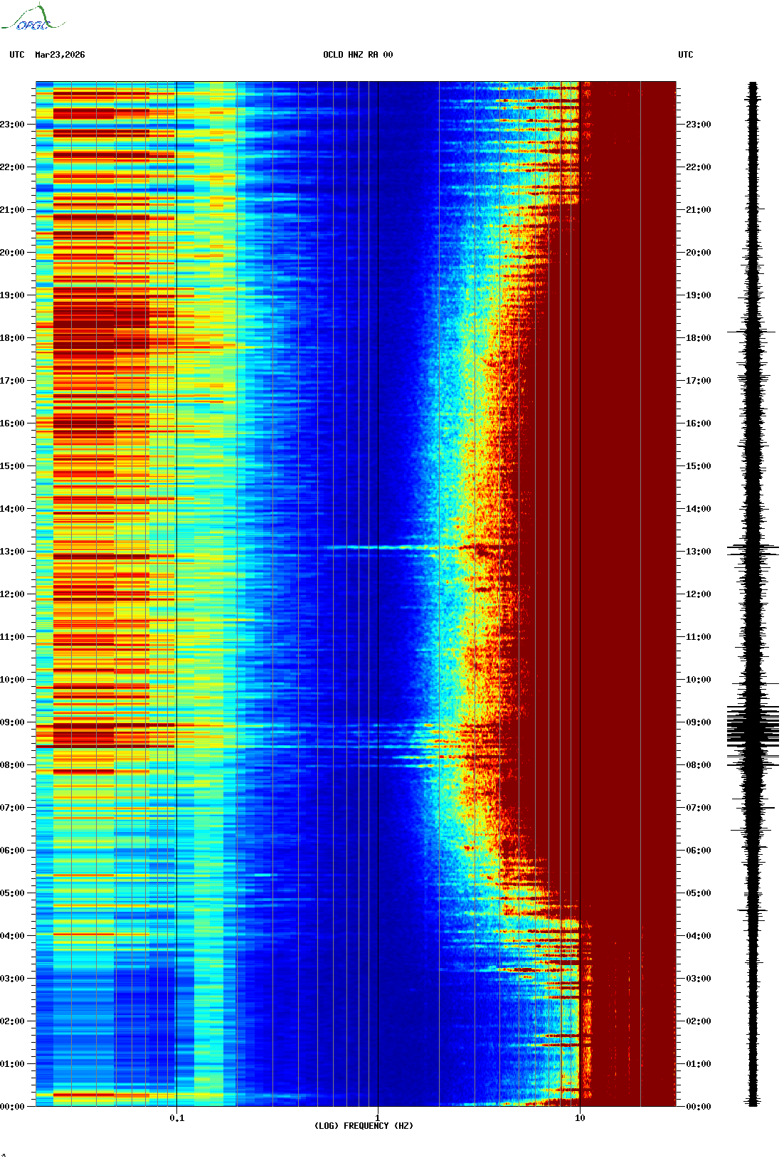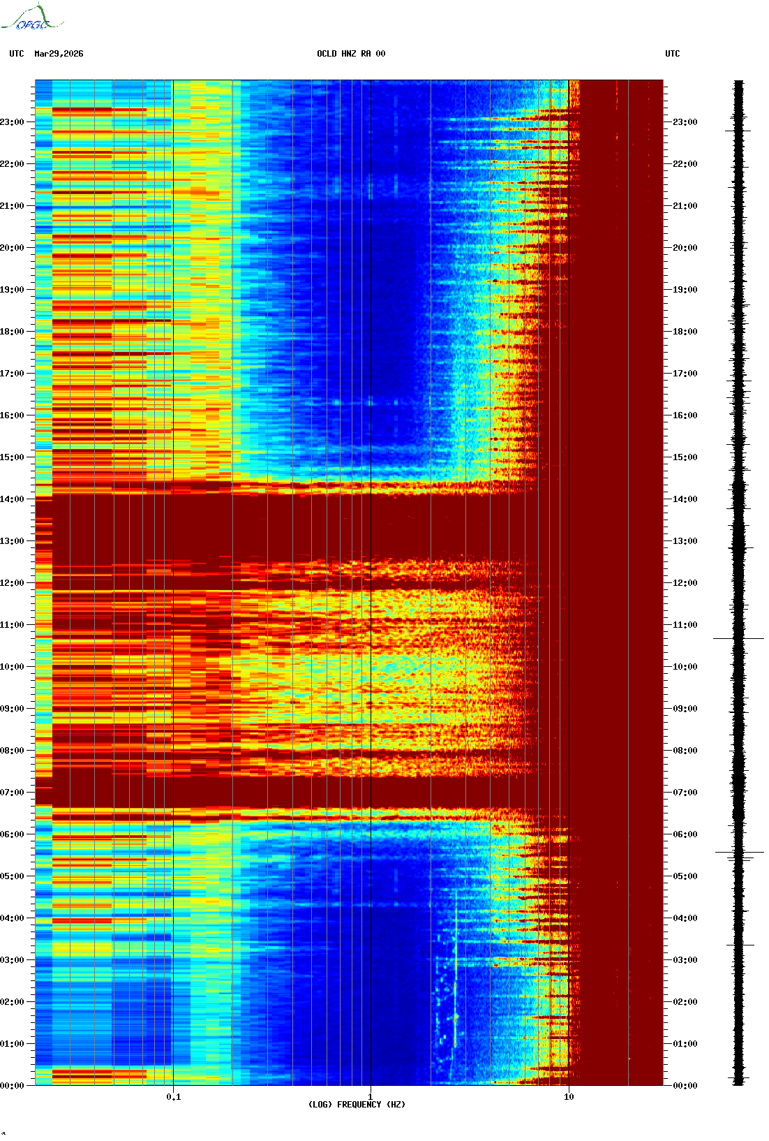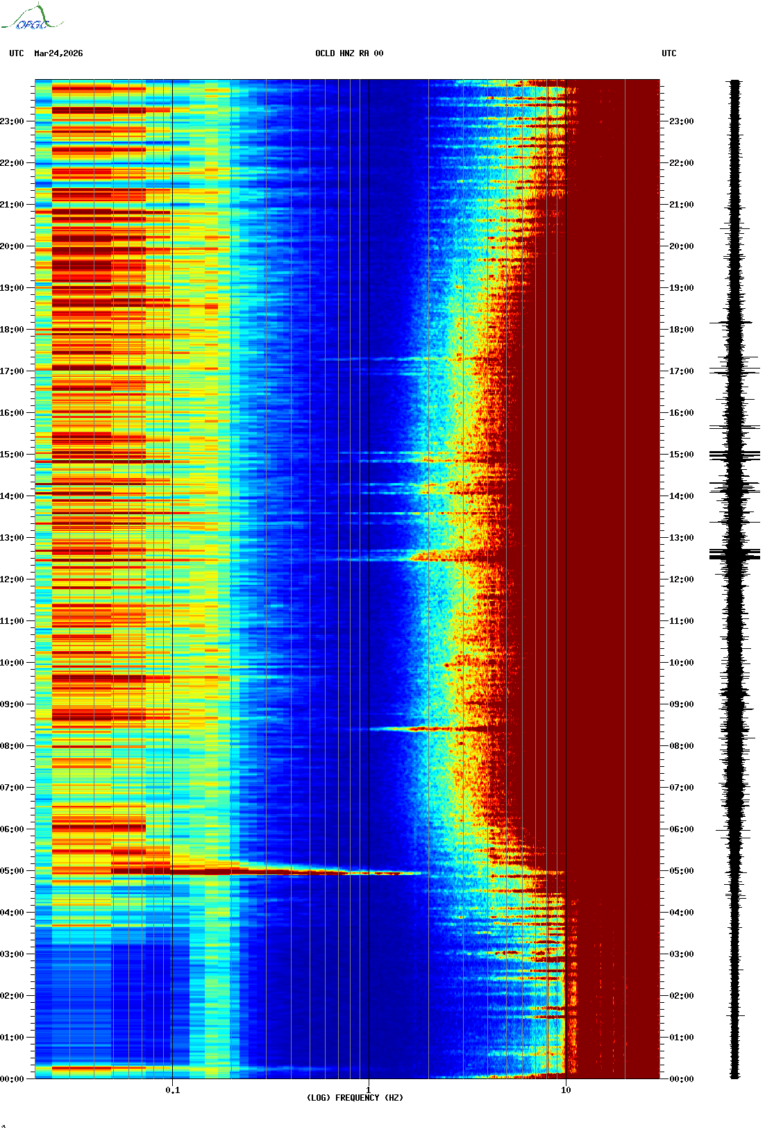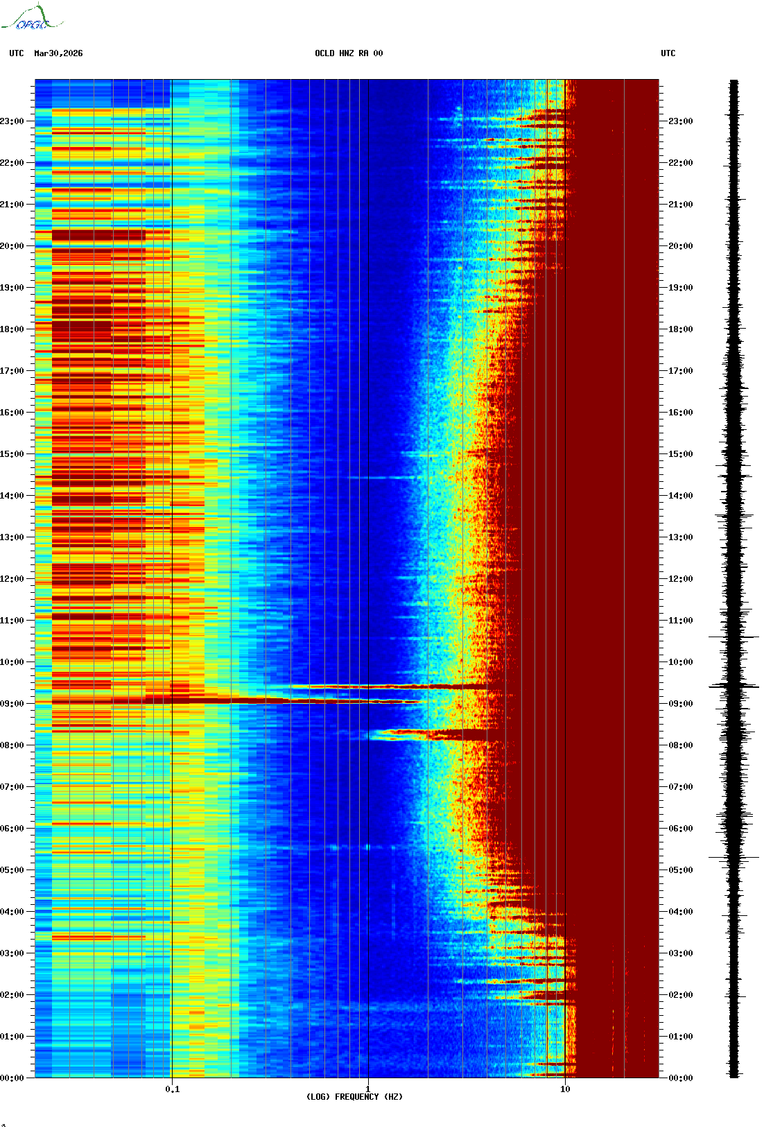 Spectrogrammes du Réseau Sismologique Auvergne-Charentes