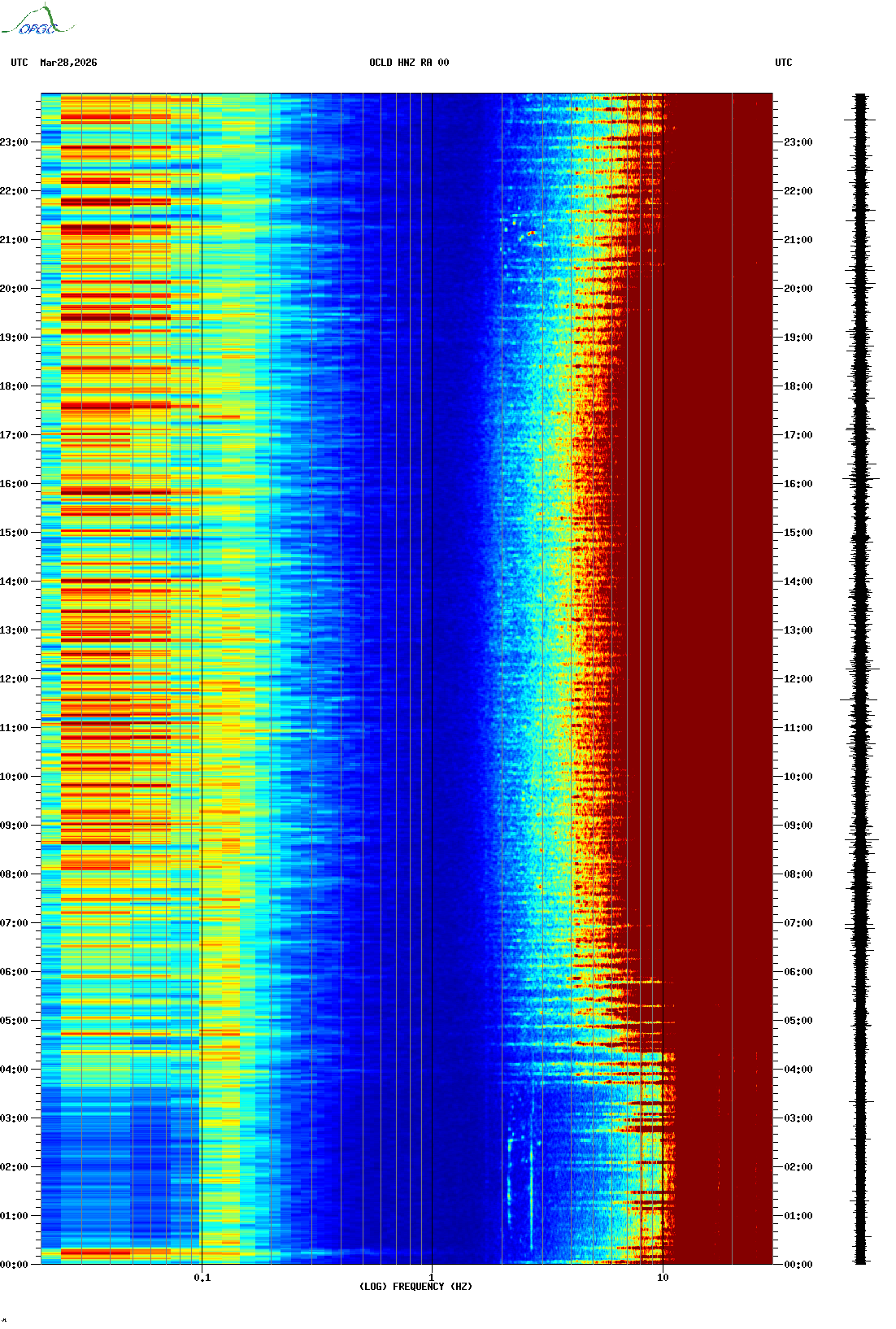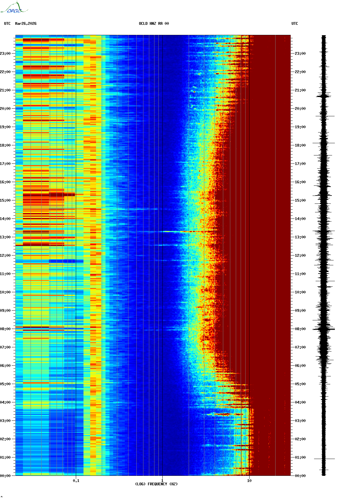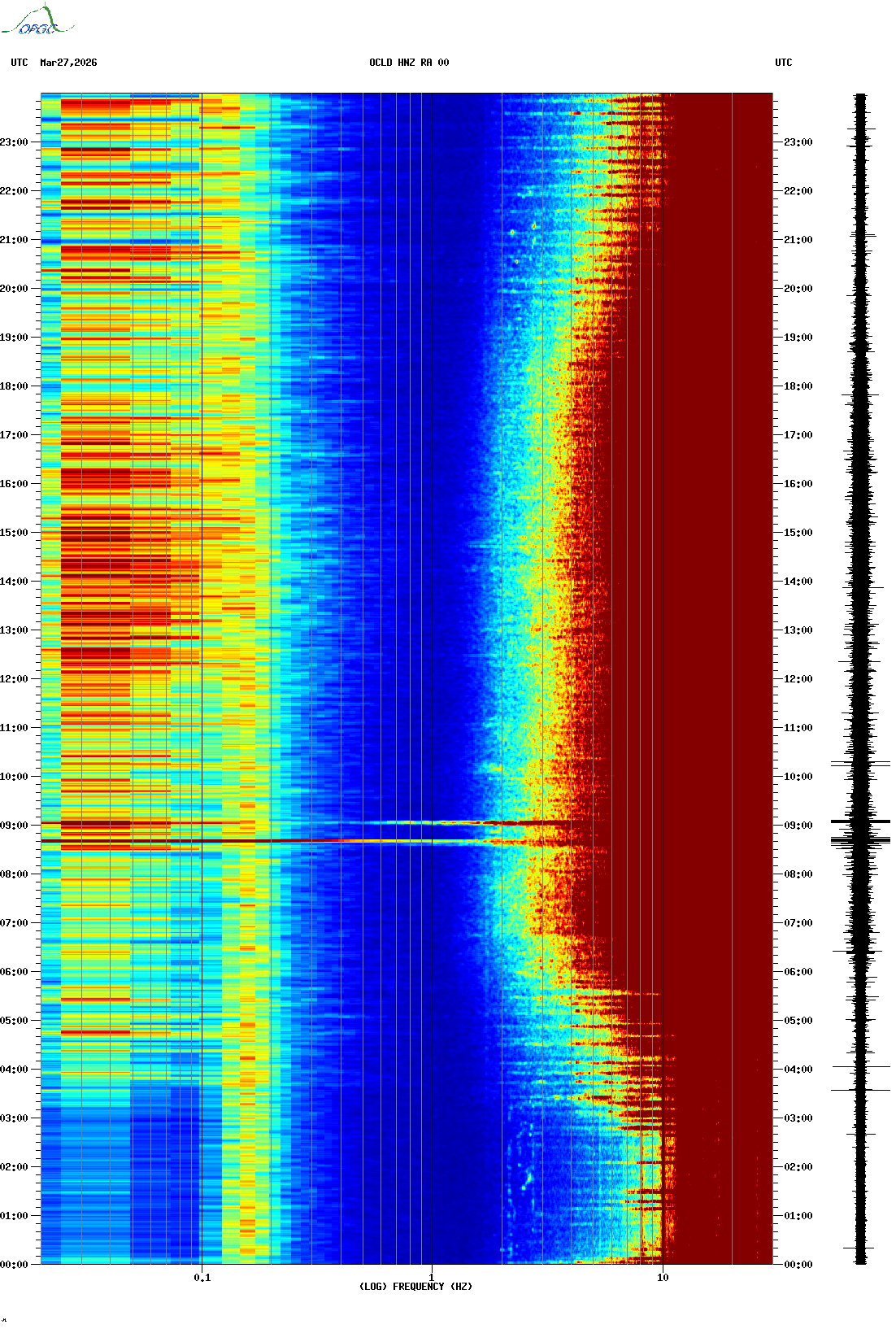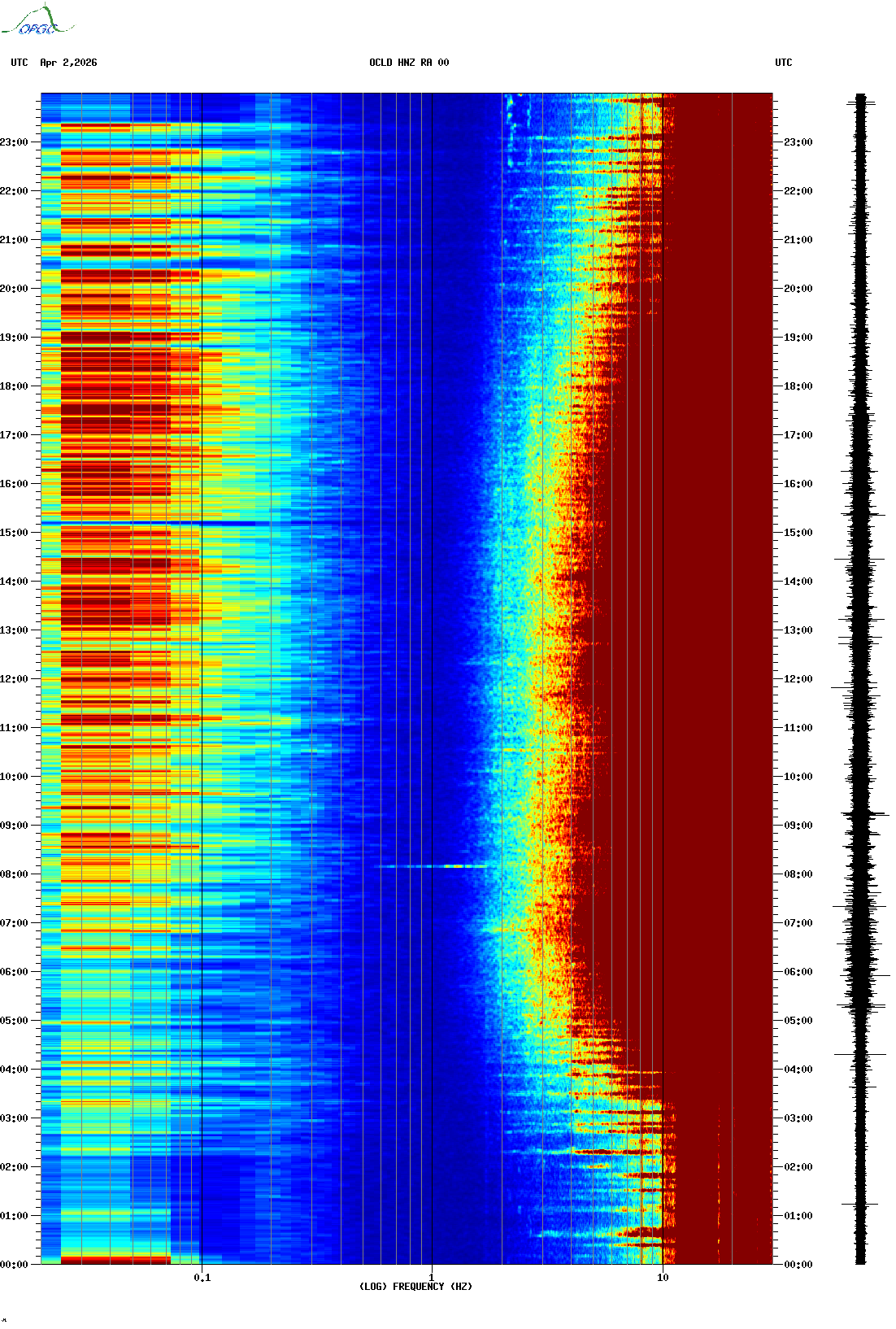 Spectrogrammes du Réseau Sismologique Auvergne-Charentes