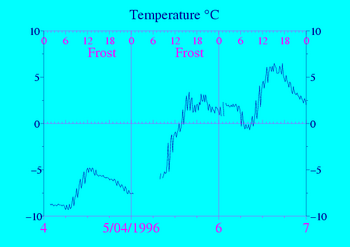 Données recueillies pendant 3 jours autour du 05/04/1996 (Attention : Du givre peut avoir perturbé les capteurs les jours signalés par "Frost")