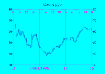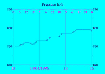 Données recueillies pendant 3 jours autour du 14/04/1996 (Attention : Du givre peut avoir perturbé les capteurs les jours signalés par "Frost")