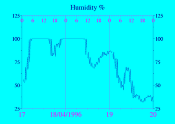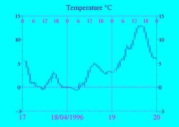 Données recueillies pendant 3 jours autour du 18/04/1996 (Attention : Du givre peut avoir perturbé les capteurs les jours signalés par "Frost")