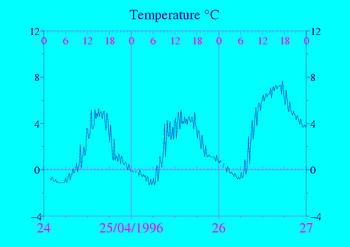 Données recueillies pendant 3 jours autour du 25/04/1996 (Attention : Du givre peut avoir perturbé les capteurs les jours signalés par "Frost")