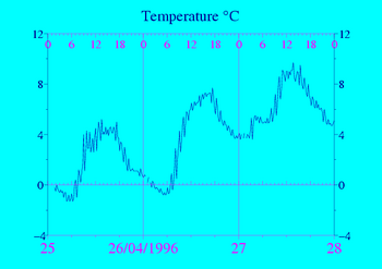 Données recueillies pendant 3 jours autour du 26/04/1996 (Attention : Du givre peut avoir perturbé les capteurs les jours signalés par "Frost")