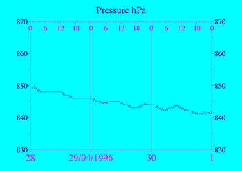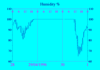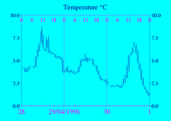 Données recueillies pendant 3 jours autour du 29/04/1996 (Attention : Du givre peut avoir perturbé les capteurs les jours signalés par "Frost")