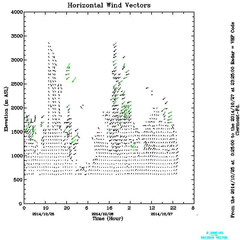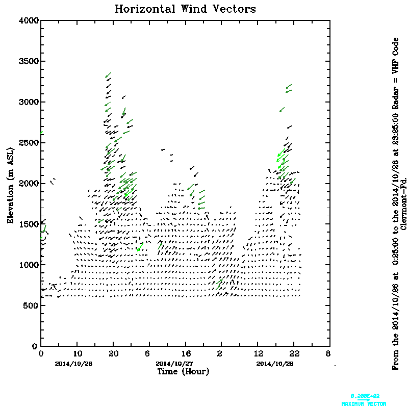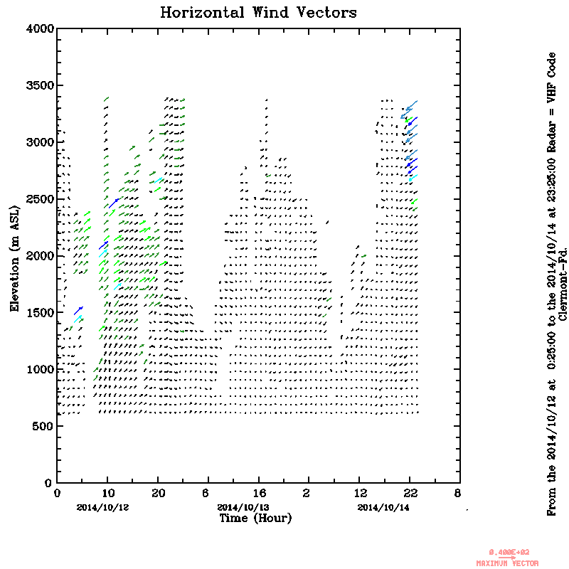 Vent horizontal mesuré par le radar UHF de Clermont-Ferrand durant Octobre (October) 2014