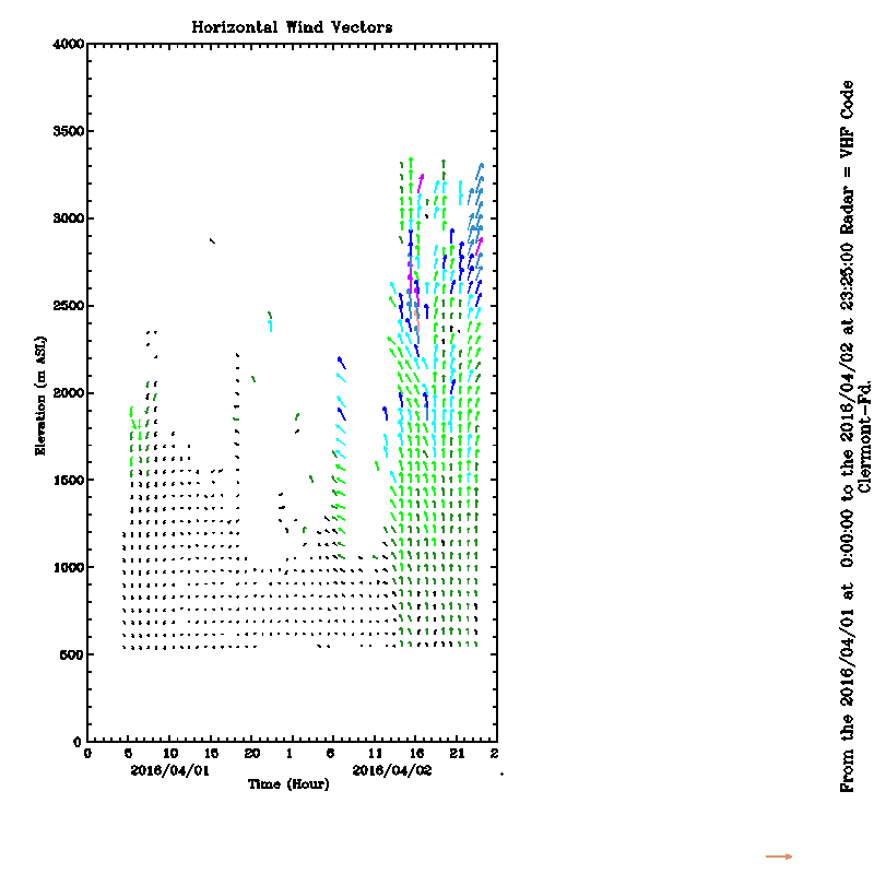 Horizontal wind data of the Clermont-Ferrand UHF radar on Avril (April) 2016