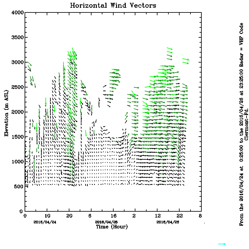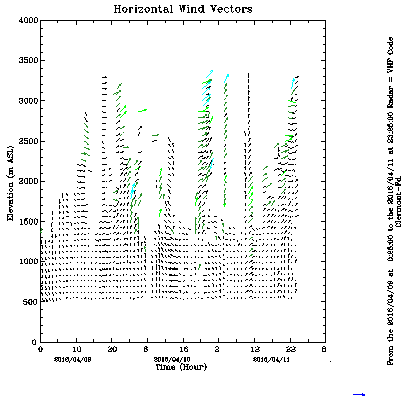 Vent horizontal mesuré par le radar UHF de Clermont-Ferrand durant Avril (April) 2016