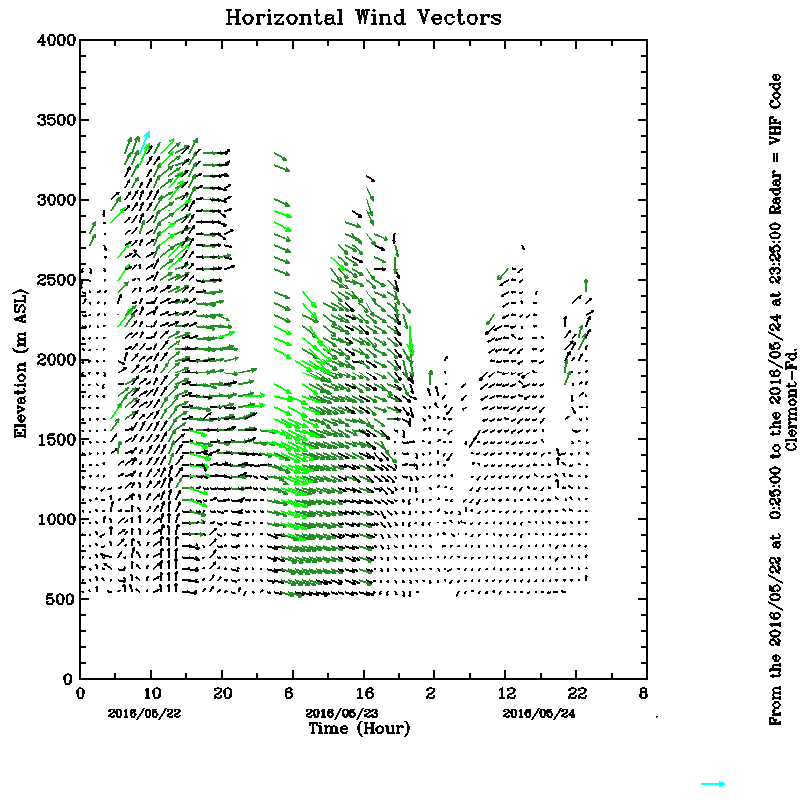 Vent horizontal mesuré par le radar UHF de Clermont-Ferrand durant Mai (May) 2016
