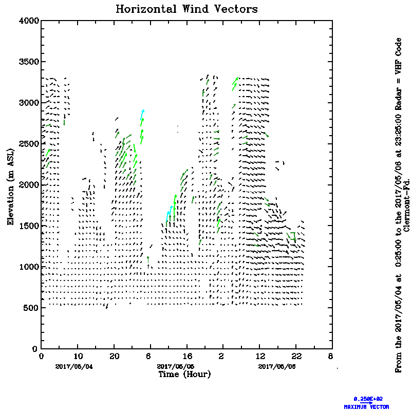 Vent horizontal mesuré par le radar UHF de Clermont-Ferrand durant Mai (May) 2017