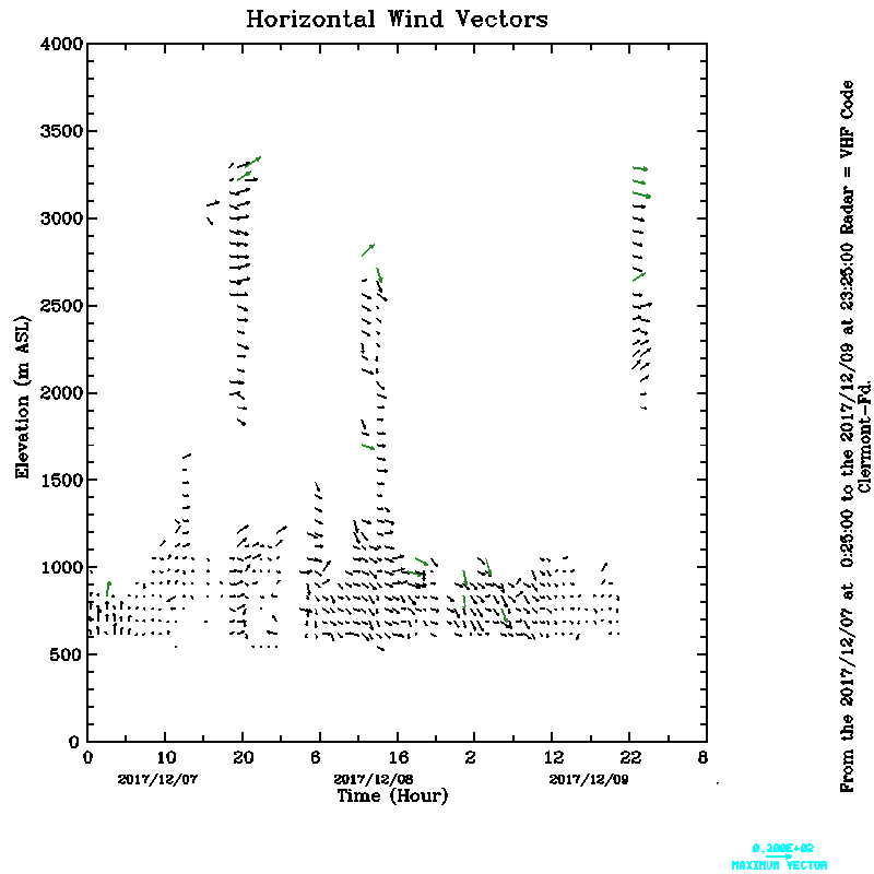Vent horizontal mesuré par le radar UHF de Clermont-Ferrand durant Décembre (December) 2017