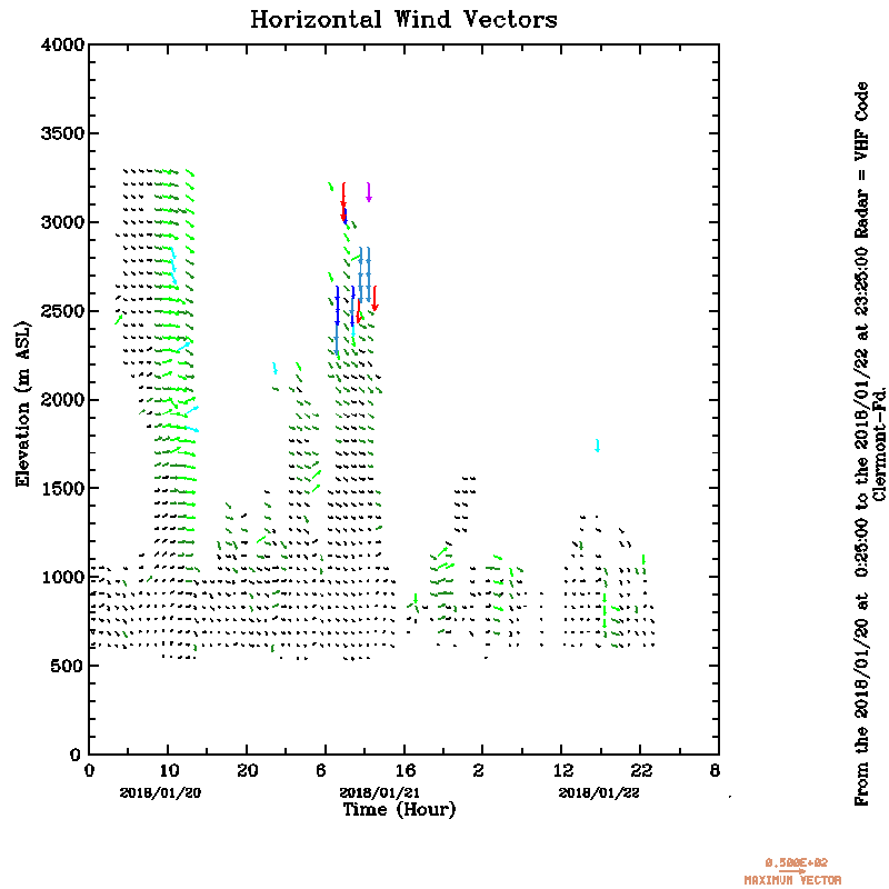Vent horizontal mesuré par le radar UHF de Clermont-Ferrand durant Janvier (January) 2018