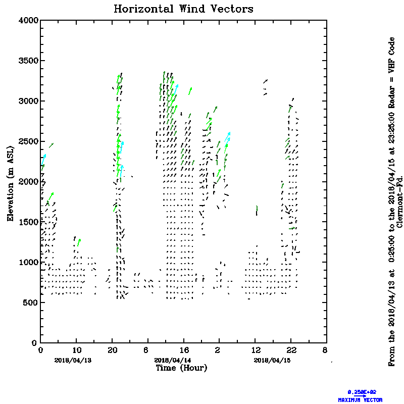 Vent horizontal mesuré par le radar UHF de Clermont-Ferrand durant Avril (April) 2018