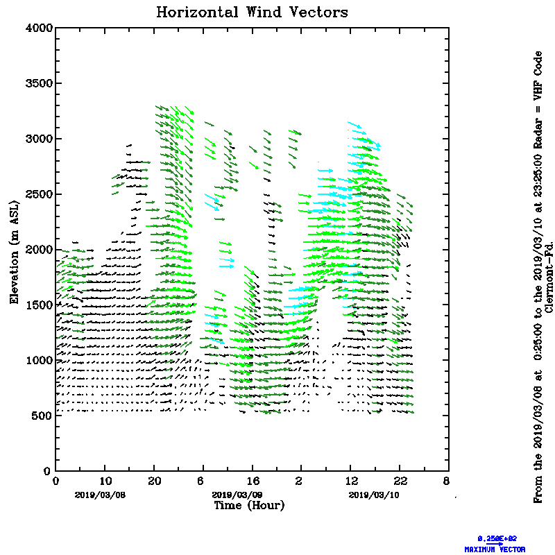 Vent horizontal mesuré par le radar UHF de Clermont-Ferrand durant Mars (March) 2019