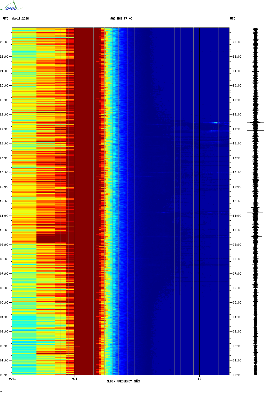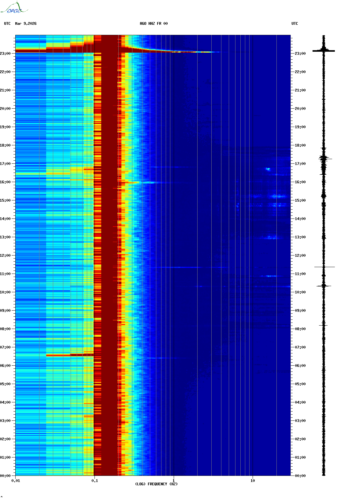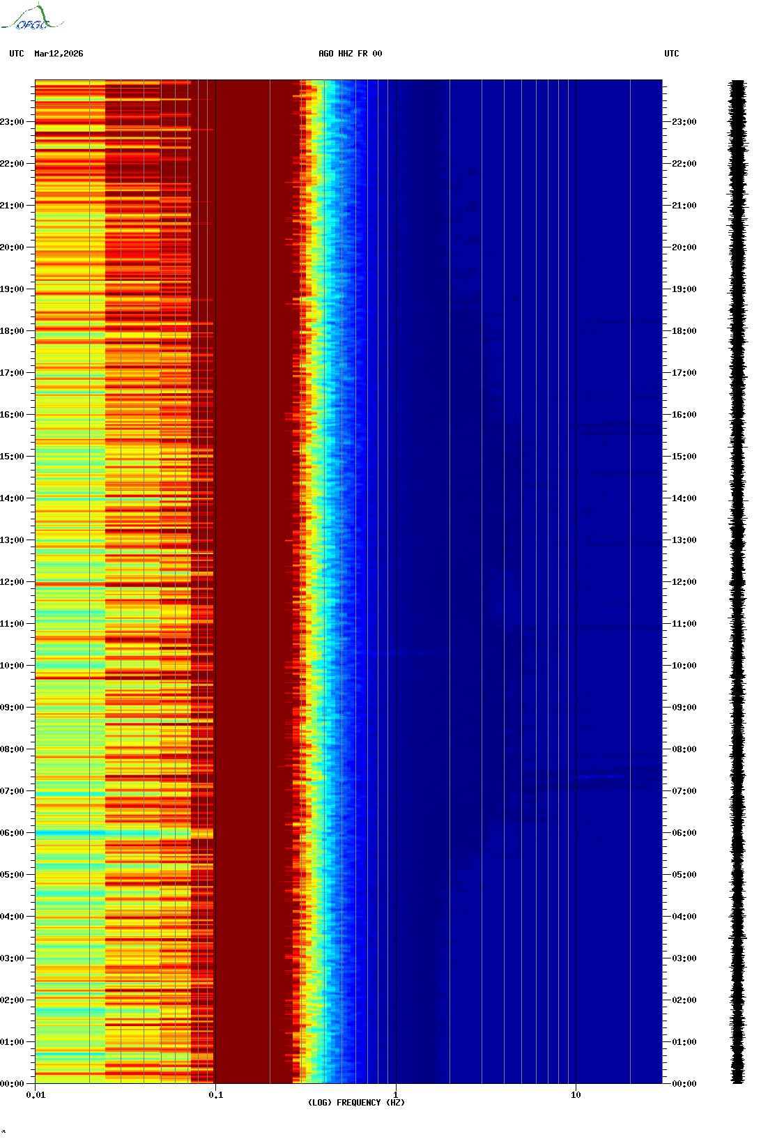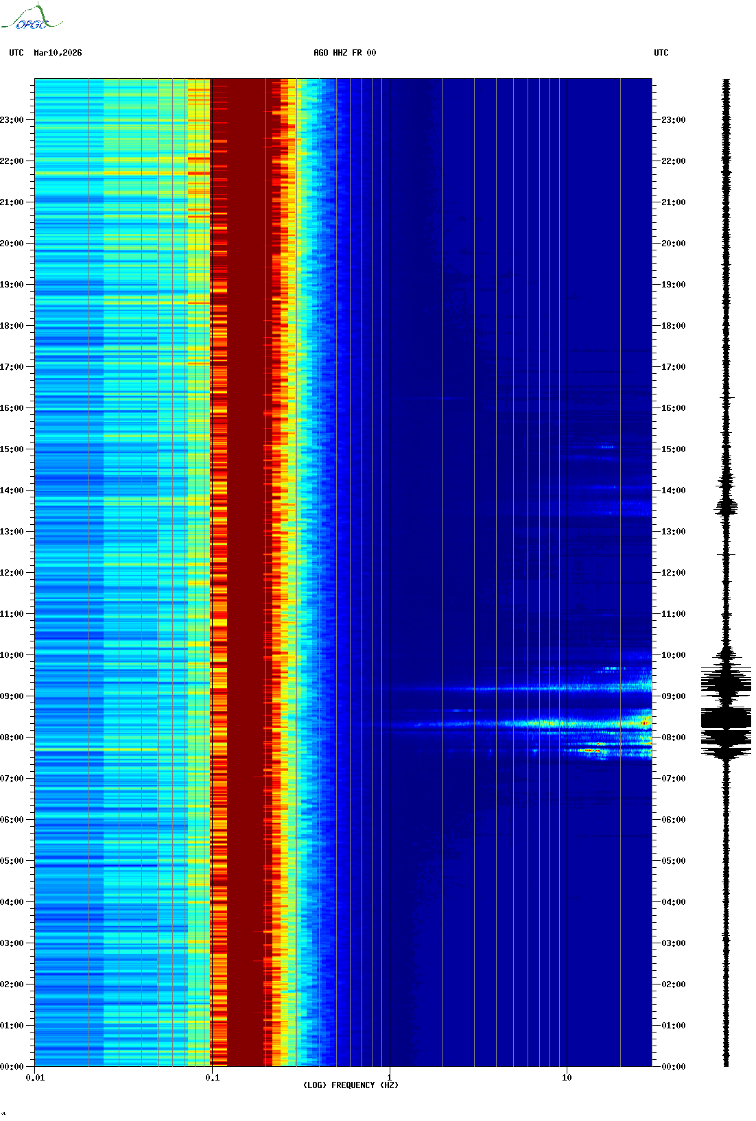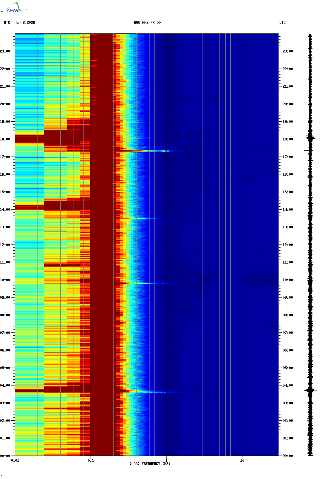 Spectrogrammes du Réseau Sismologique Auvergne-Charentes
