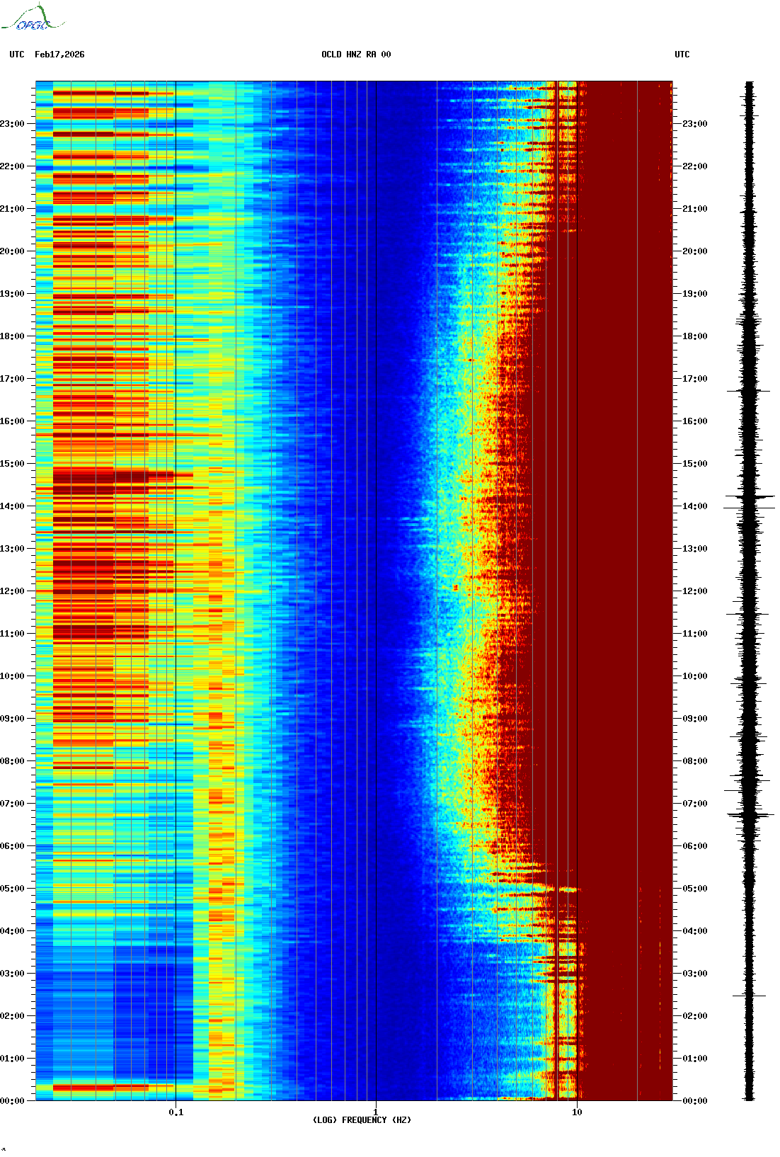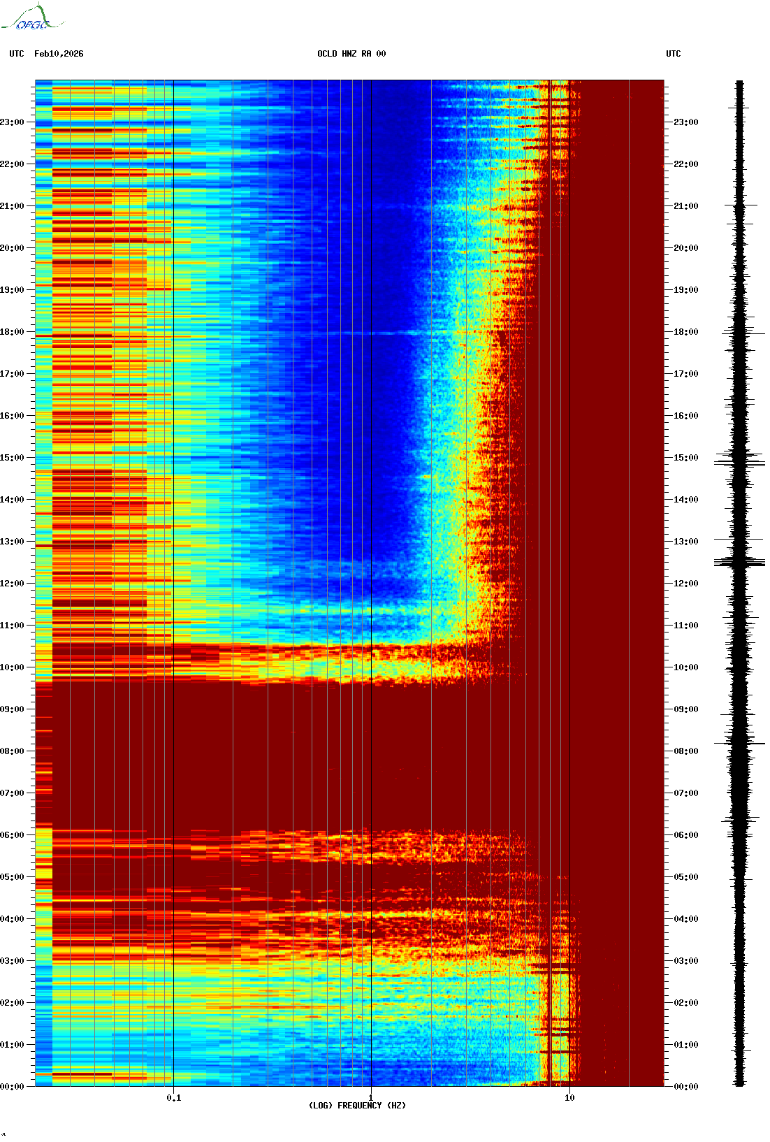 Spectrogrammes du Réseau Sismologique Auvergne-Charentes